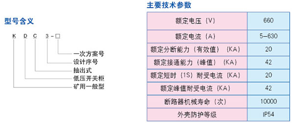 KDC3礦用一般型抽出式低壓開關(guān)柜適用于煤礦井下無瓦斯、煤塵爆炸危險場所或其它類似的工業(yè)生產(chǎn)部門,對額定電壓至660V、額定頻率作為50Hz的三相交流低壓配電系統(tǒng)中作為動力、配電、照明、電機及其它電氣設備的起動、控制和保護的開關(guān)設備及電源變換設備。